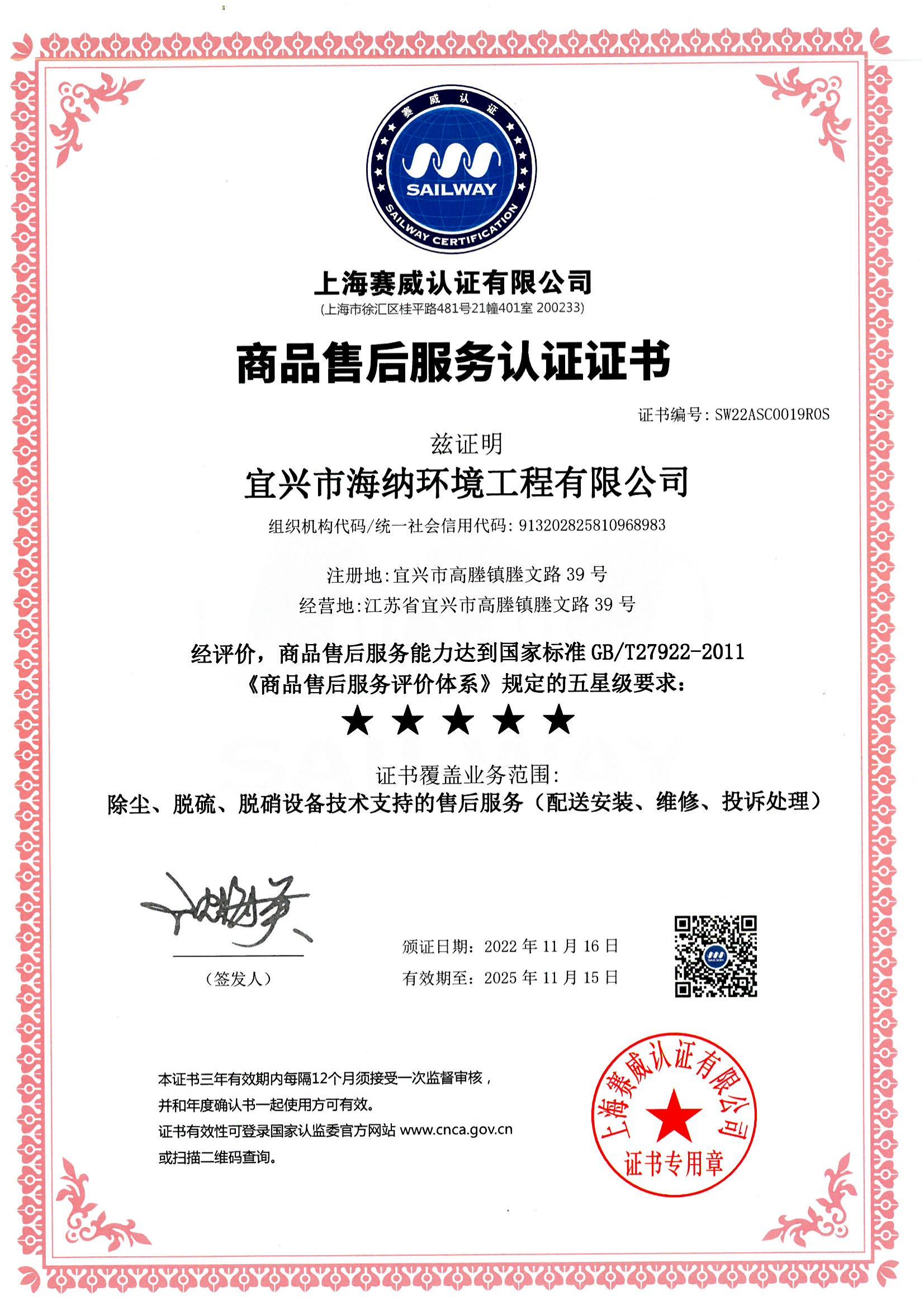 售后服務(wù)證書