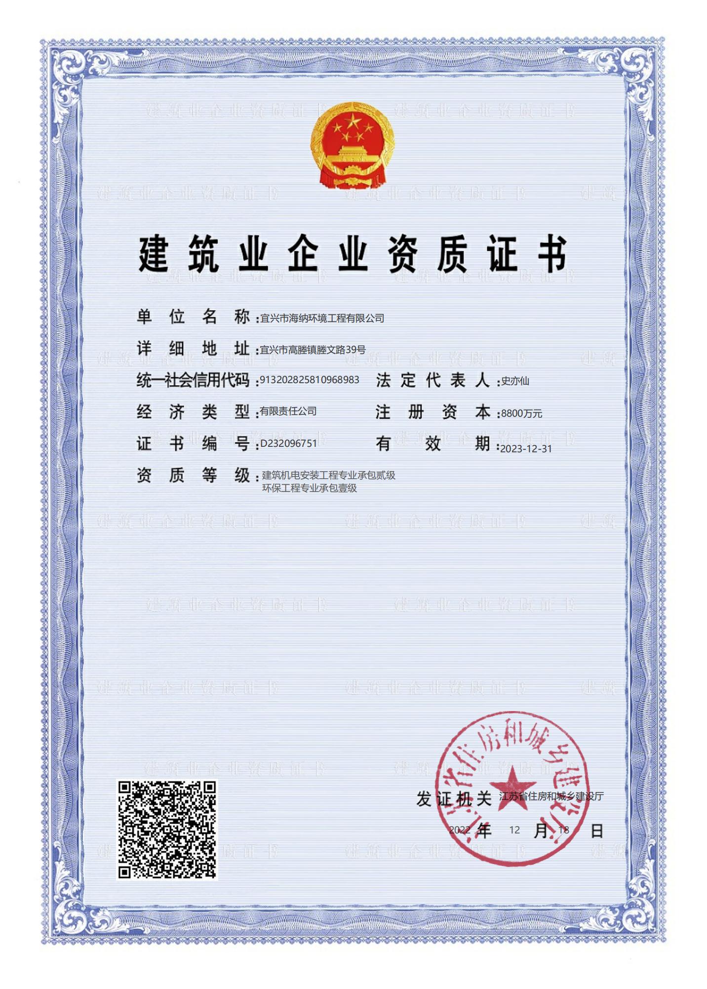 環(huán)保***承包一級、機(jī)電二級